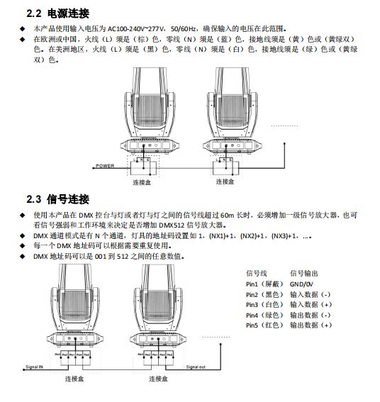 菜单 WDMX RESET 和 SIGNAL 显示 |