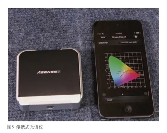多希望数字式测光表能自带几条V(λ)曲线,以便用户选择想要的那一条。这点计算量真的微不足道,但笔者一定会为此拍手叫好。还有两种切实可行的方法。首先,先用光谱仪测量光源的辐射度量,再结合V(λ)曲线来算,Excel处理起来易如反掌。当然,光谱仪用起来不如测光表来得方便,好在市面上出现了几款体积小巧的便携式光谱仪,这样用起来就方便多了。图8是笔者使用的一款光谱仪。第二,用户可以要求灯光厂家提供基于ANSI E1.48 V(λ)曲线的光度数据,这一点至关重要,对于固态光源,更要这么做。反正,厂家是用光谱仪来测量的,提供这些数据的话,应该没什么大问题。