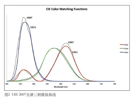 图2是一套新的CMF曲线,它发布于2007年,取代之前的1931CMF曲线。