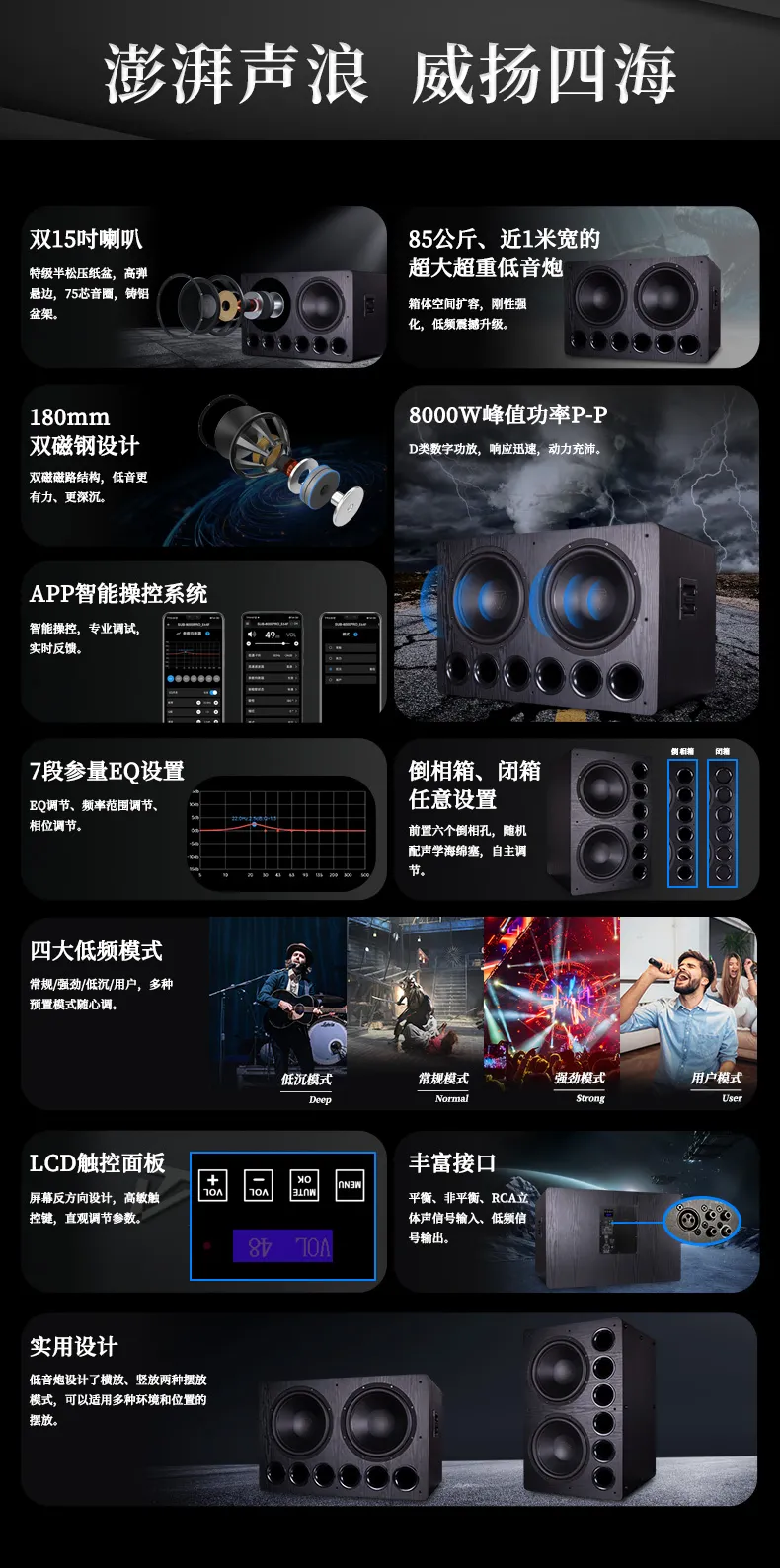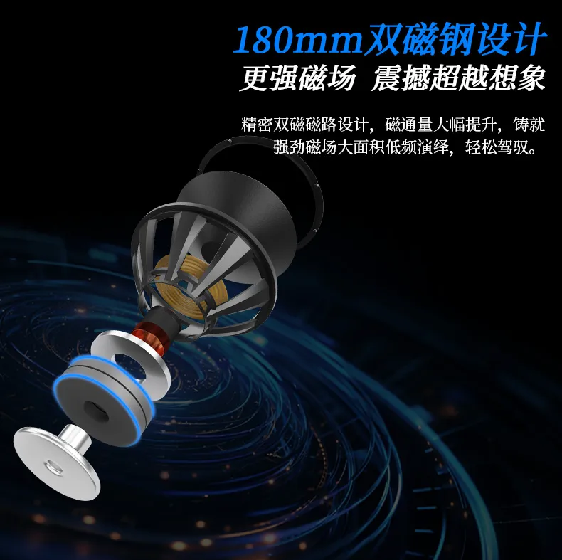 4. 180mm双磁钢设计,喇叭辐射效率更高更稳定;