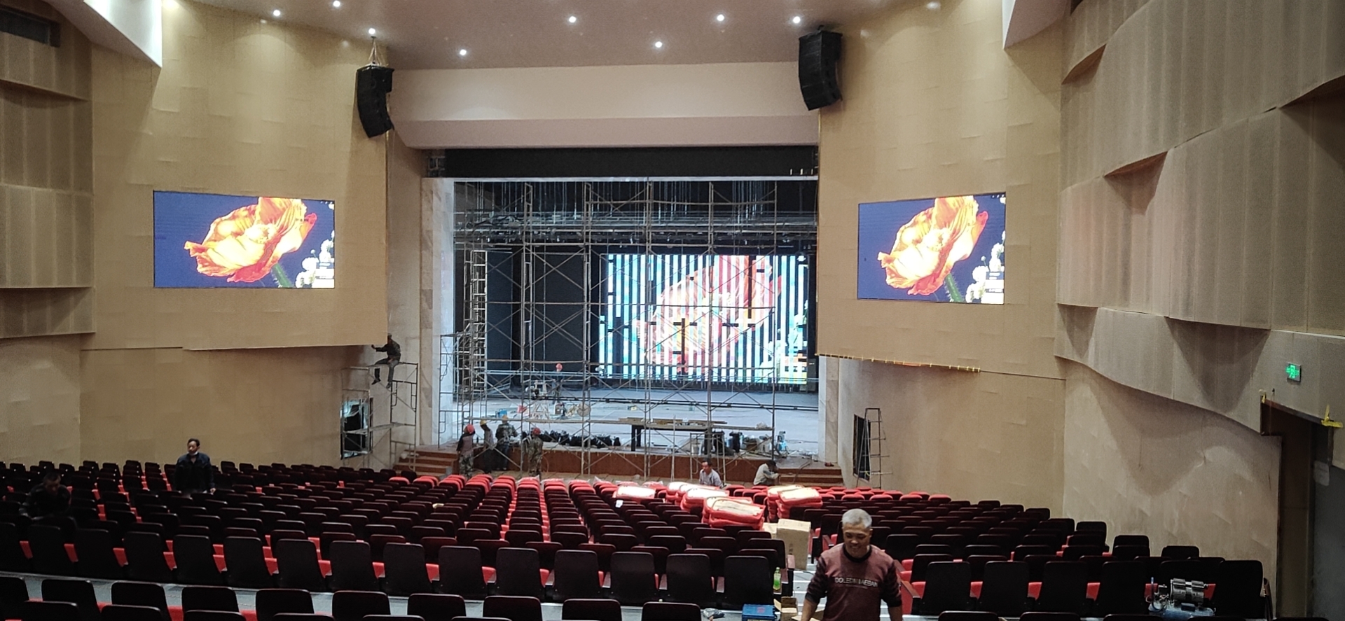 本文化馆主要用于霍尔果斯文化活动中心文艺演出、会议的需要来设计。本系统包括:舞台音响部分、舞台电影部分、舞台机械幕布部分、舞台灯光部分、舞台LED大屏。